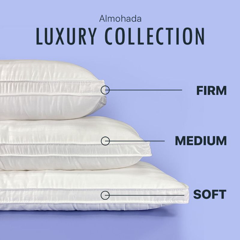 Fibra premium sensación pluma y una lujosa tela de algodón satín para una maravillosa experiencia de confort. Confort firme. Ideal para dormir en Boca arriba y de lado.