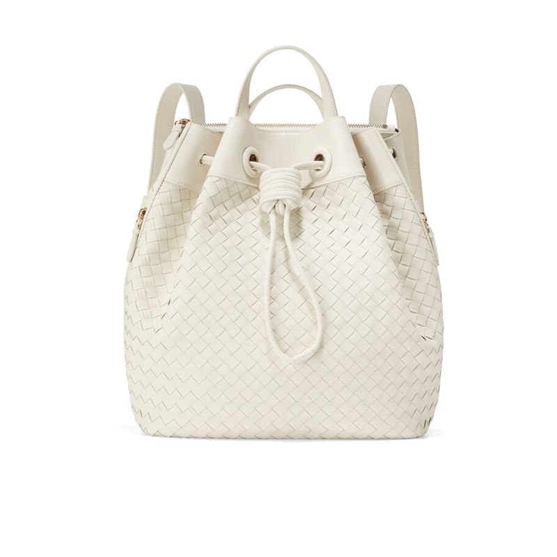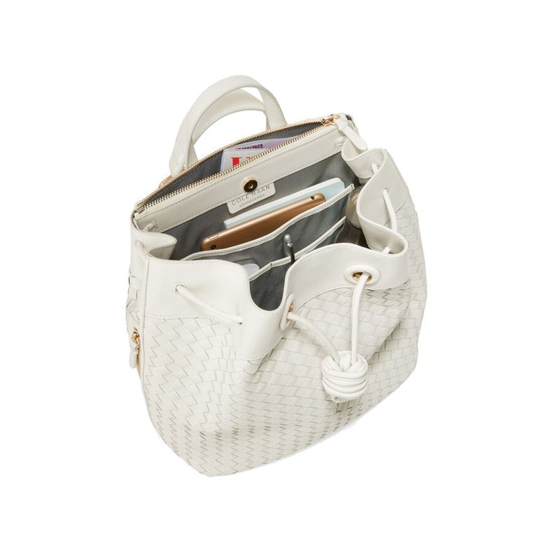 Backpack Wvn Lthr Drwsng Ivory