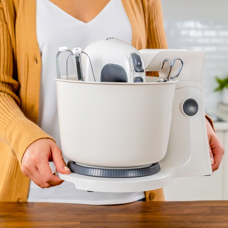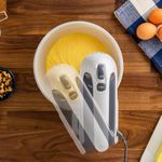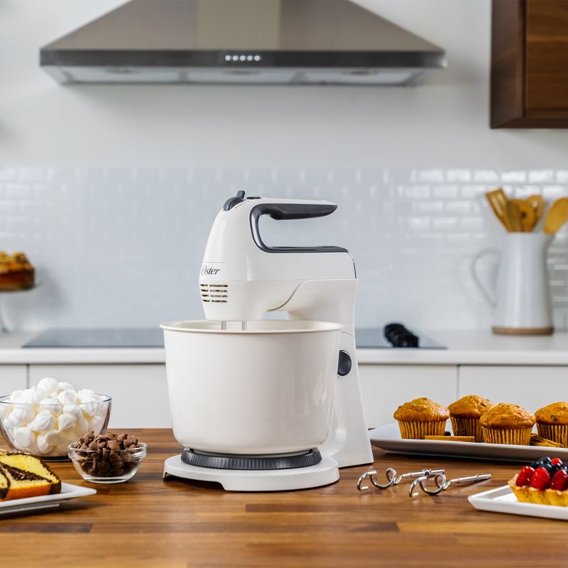 Batidora Oster 2 en 1 (mano y pedestal) con 6 velocidades y potencia de 250W, ideal para batir, mezclar y preparar masas, cremas y postres con facilidad.