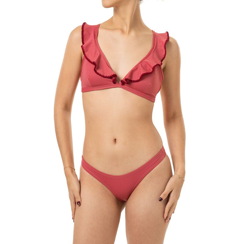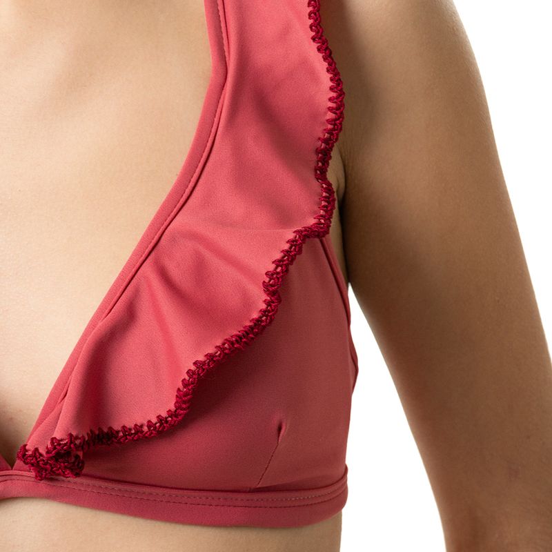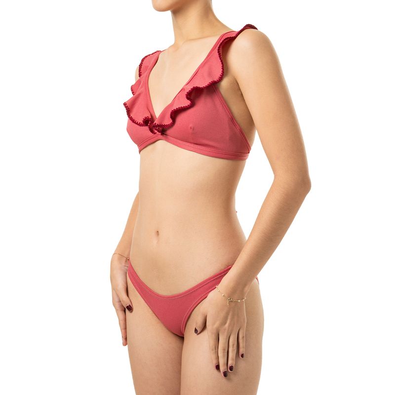 Bikini en tono rosa coral que resalta el bronceado y aporta un look fresco y femenino. Su diseño limpio y versátil lo convierte en una opción infaltable para los días de sol.