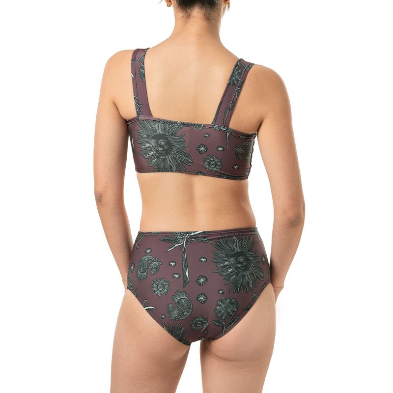 Bikini con delicado print de hojitas que aporta un aire natural y femenino. Su diseño favorecedor y cómodo lo convierte en un básico ideal para disfrutar del sol con estilo y libertad de movimiento.