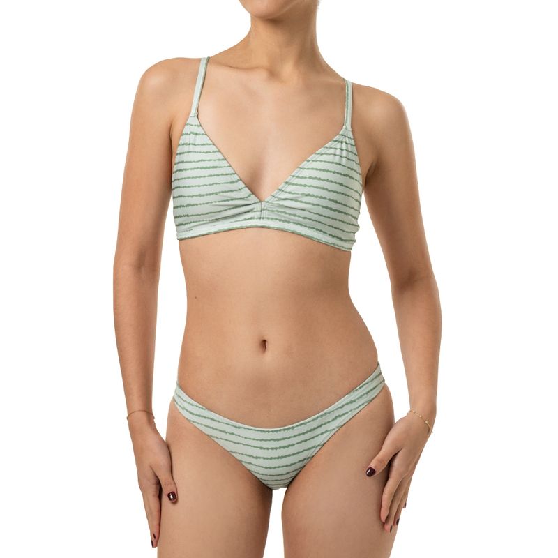 Bikini a rayas en tono menta que combina un diseño clásico con un color fresco y actual. Cómodo y versátil, perfecto para un look veraniego relajado.