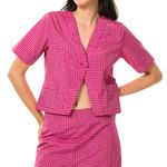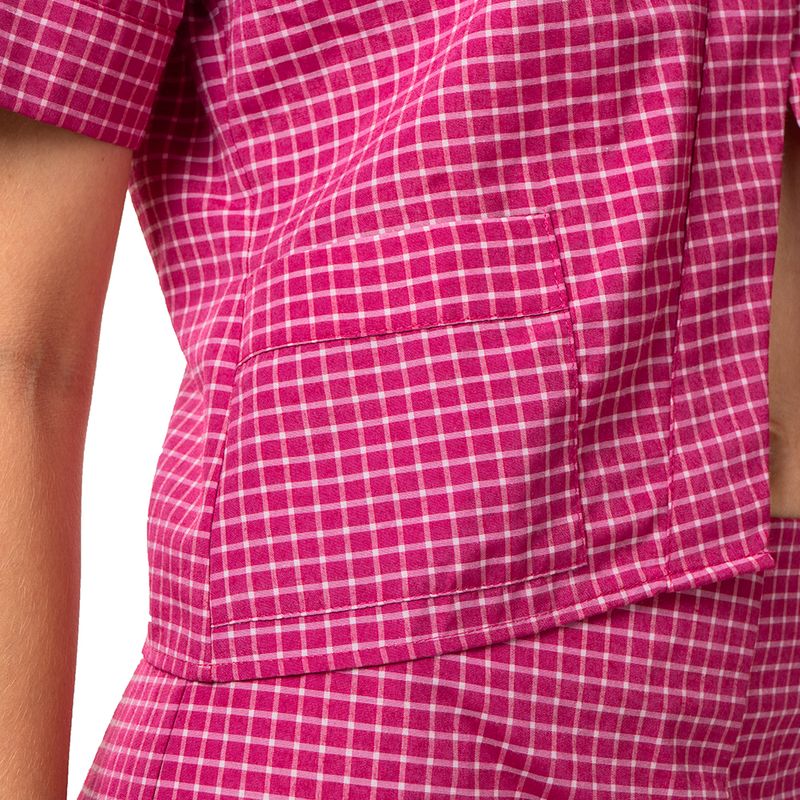 Blusa con estampado de cuadros en fucsia, de inspiración picnic. Un diseño femenino y alegre para outfits relajados.