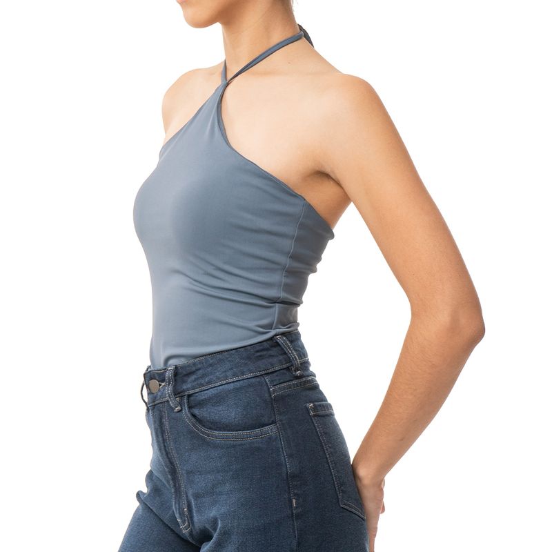 Este body es la definición de un básico que se convierte en statement piece. Confeccionado en un tejido fluido y ligero, se adapta con naturalidad al cuerpo, aportando frescura y comodidad en cada movimiento. Su diseño halter con tirantes le da un aire moderno y sofisticado, perfecto para quienes buscan una prenda versátil que pueda transformar un look sencillo en algo especial.