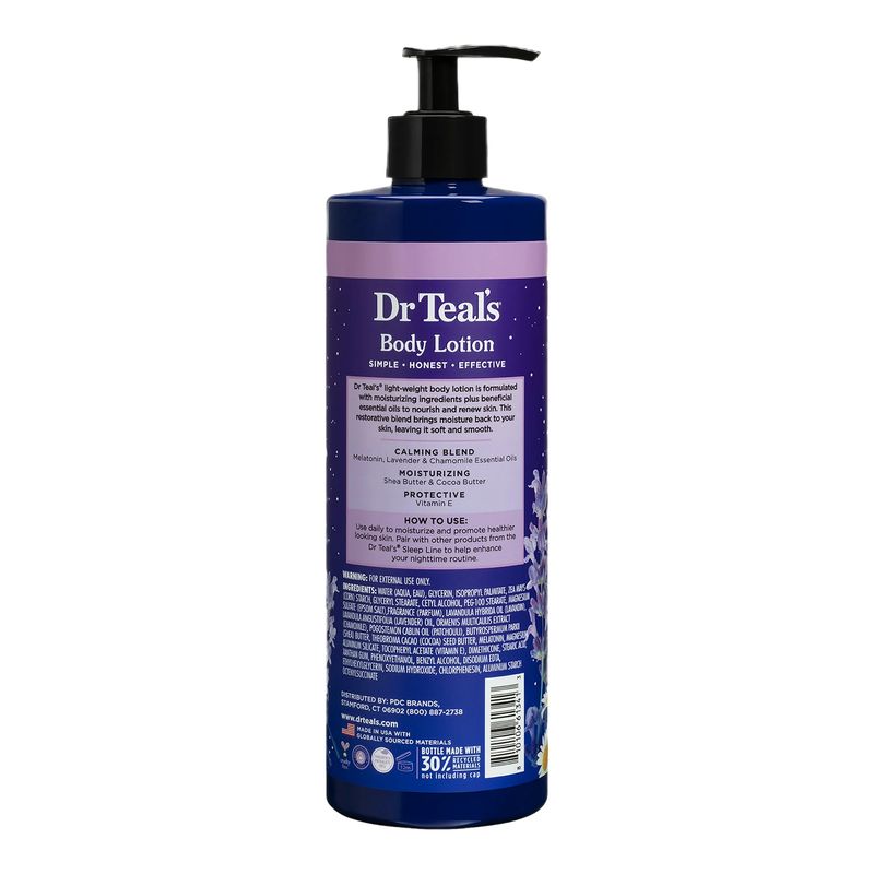 La loción corporal Dr Teal’s Sleep con melatonina, lavanda y manzanilla está diseñada para hidratar profundamente la piel mientras promueve la relajación antes de dormir. Su fórmula ligera, enriquecida con manteca de karité, manteca de cacao y vitamina E, ayuda a suavizar y nutrir la piel, dejándola con una sensación sedosa y saludable. Gracias a su mezcla de aceites esenciales, brinda un aroma calmante que ayuda a reducir el estrés diario y favorece un descanso más reparador, siendo ideal para incorporar en la rutina nocturna.
