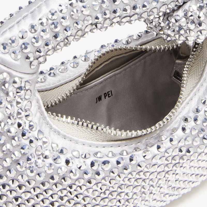 La JW PEI Mini Cristal plateada es el bolso ideal para brillar en eventos y fiestas. Diseño compacto, elegante y perfecto para looks de noche con un toque glam.