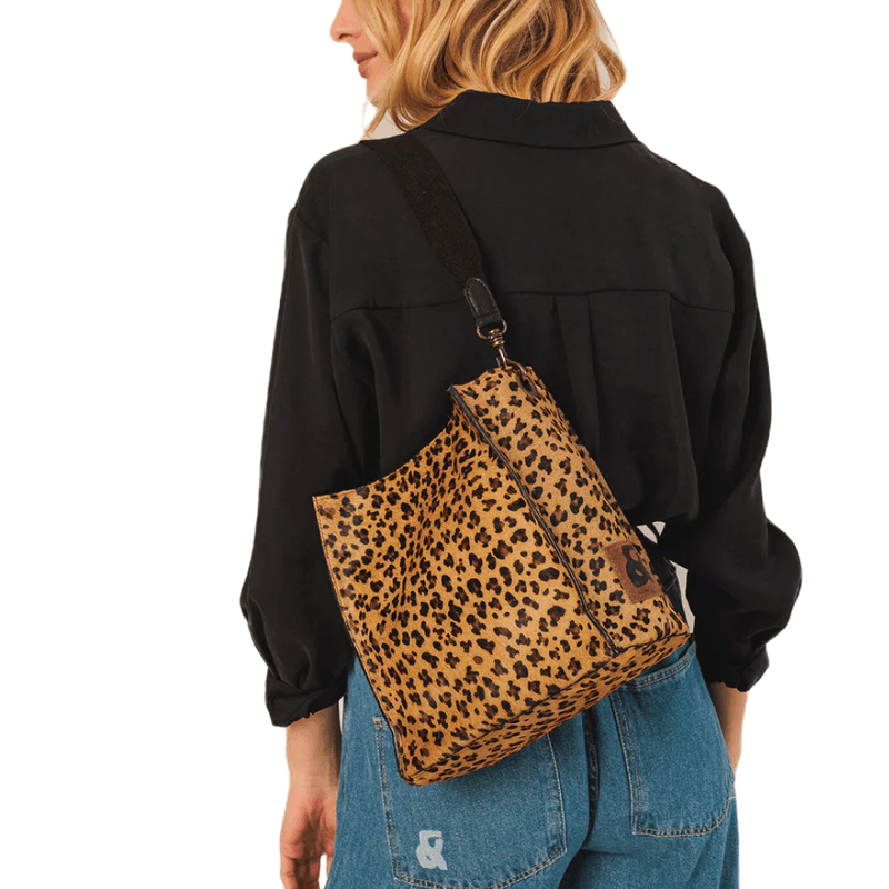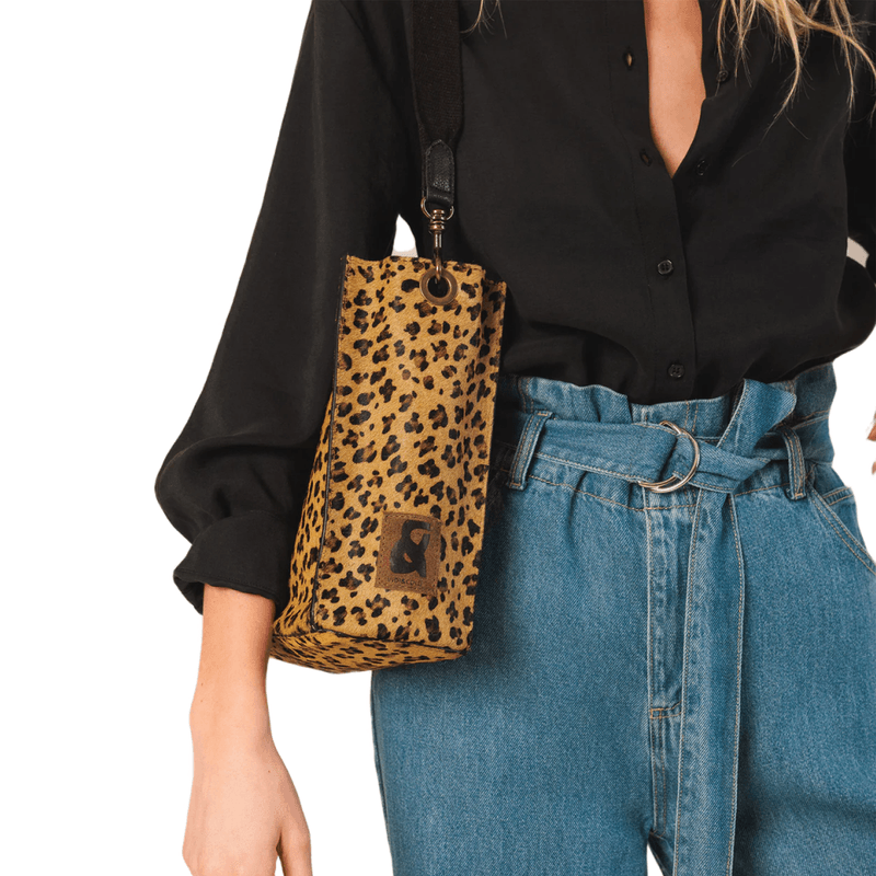 Bolso bucket de piel con efecto piel de potro y asa de algodón que aporta personalidad y estilo único. Un accesorio con sentido artesanal, ideal para elevar cualquier outfit casual o elegante.