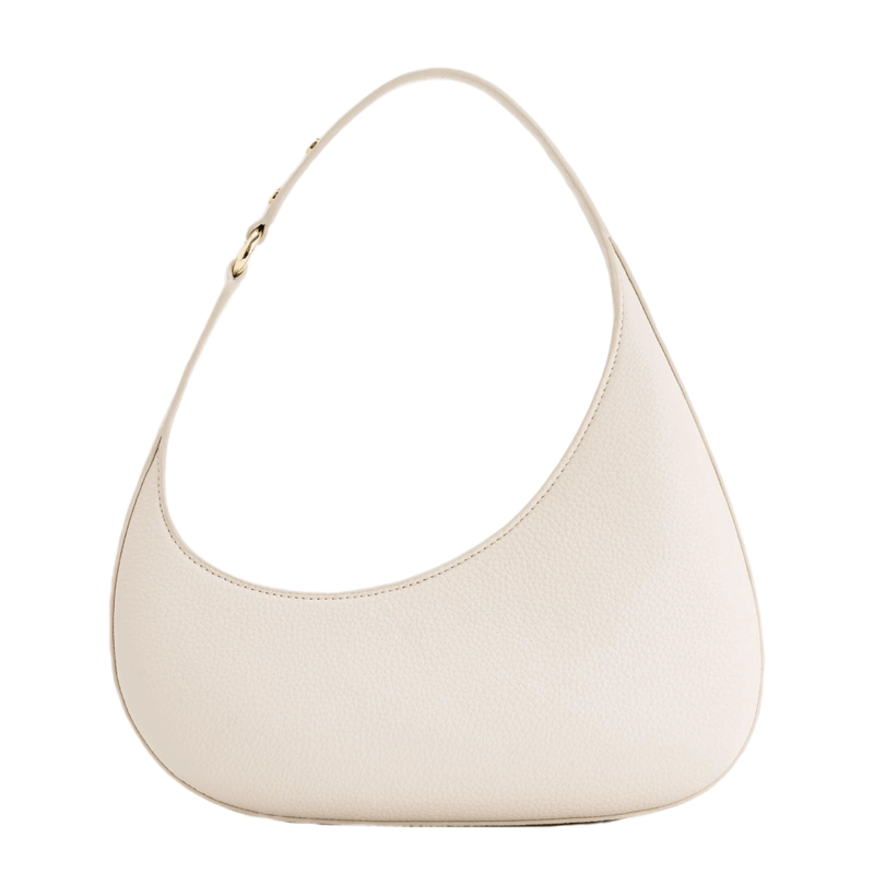 El Harlee marfil ofrece una silueta curvada suave y elegante, confeccionado en cuero vegano de calidad. Su tamaño perfecto y cierre seguro lo convierten en el bolso ideal para llevar lo esencial con estilo.