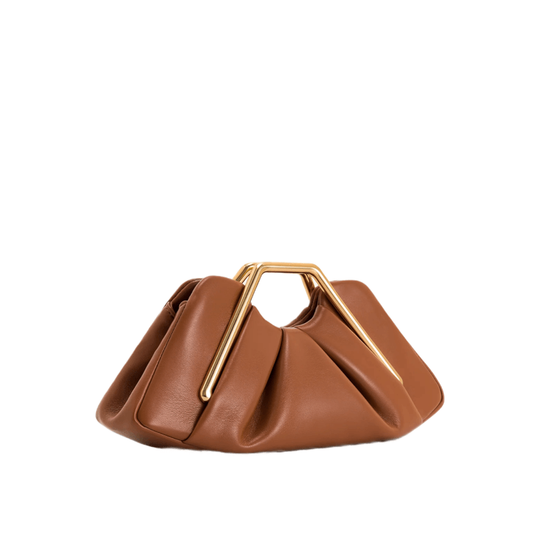 Bolso de mano JW PEI marrón con estructura metálica, ideal para elevar outfits diarios o de noche. Estilo moderno con acabado elegante y funcional.