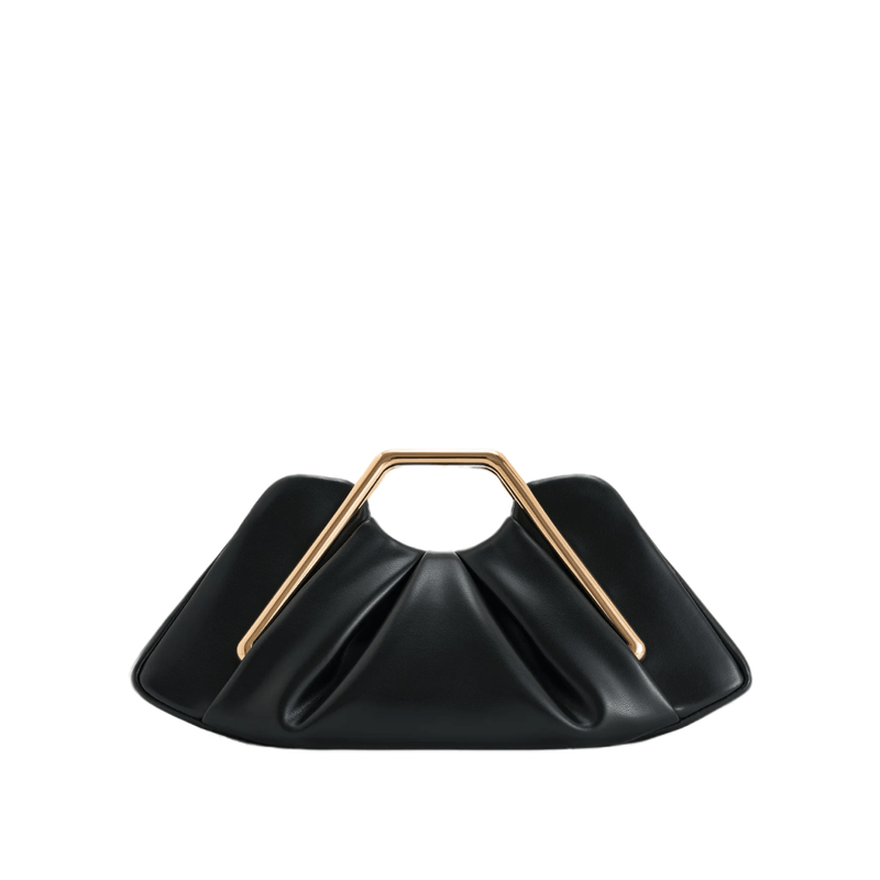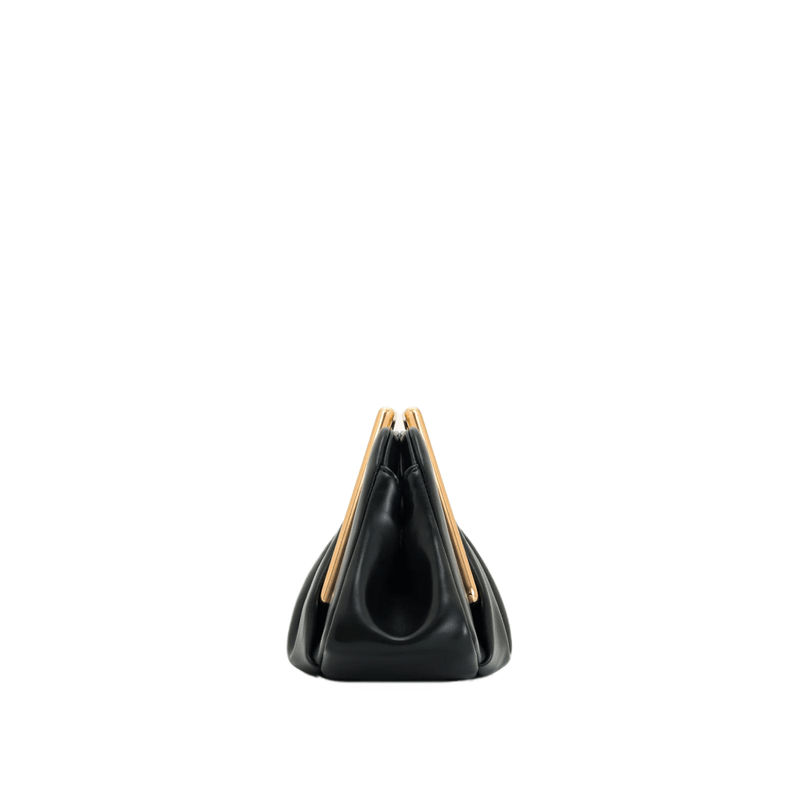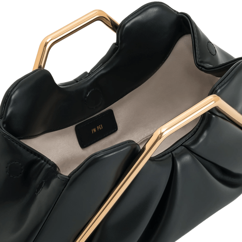 Bolso de mano JW PEI en negro con estructura metálica, ideal para eventos, cenas o looks nocturnos. Diseño moderno, elegante y compacto para llevar lo esencial con estilo.
