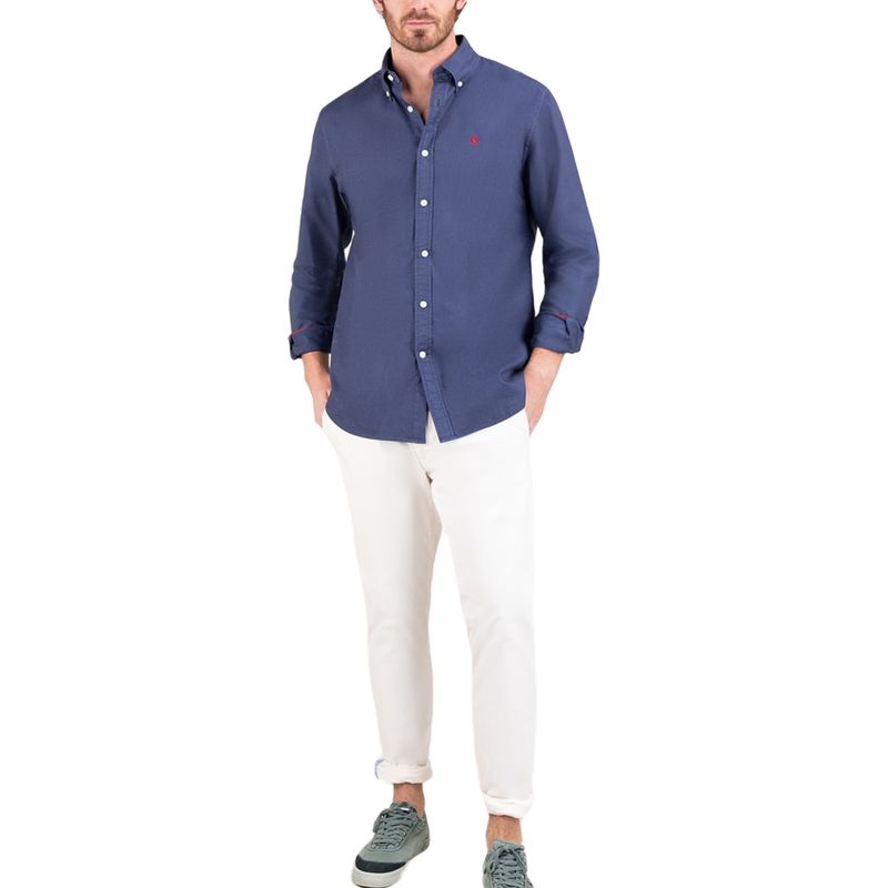 Camisa lisa de hombre confeccionada en 100% algodón. Corte Regular Fit, cuello buttondown y cierre con botones. Manga larga terminada en puño simple y logo en el pecho bordado.