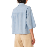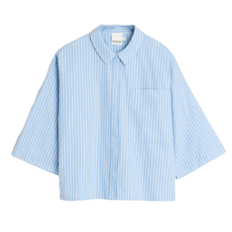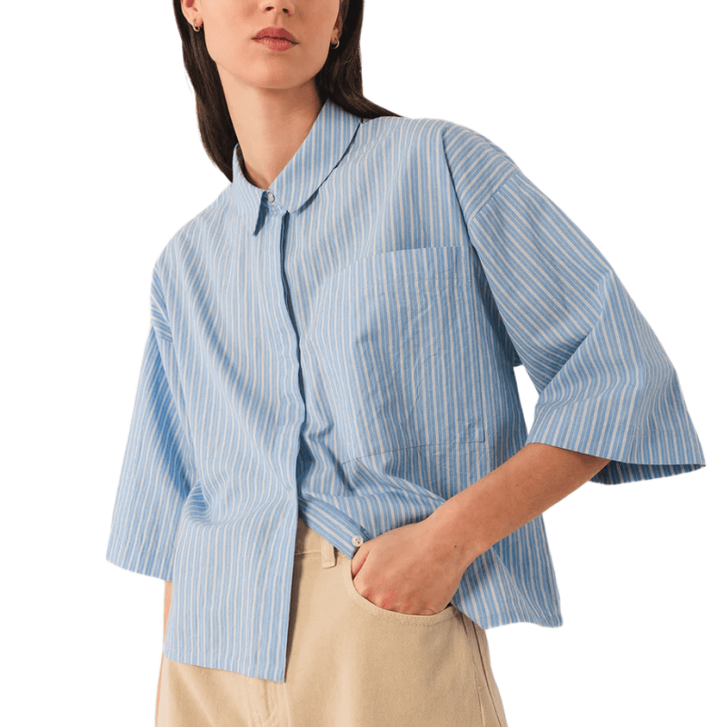 Camisa azul de tejido suave y corte cómodo. Perfecta para looks frescos y casuales con un toque elegante.