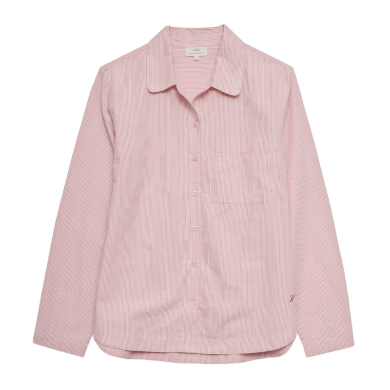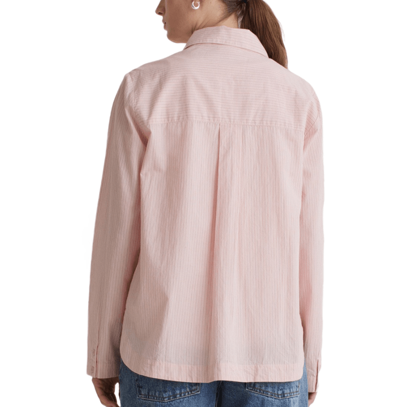 Camisa básica de popelín con rayas rosas, fresca y atemporal. Perfecta para looks clásicos con un toque actual.