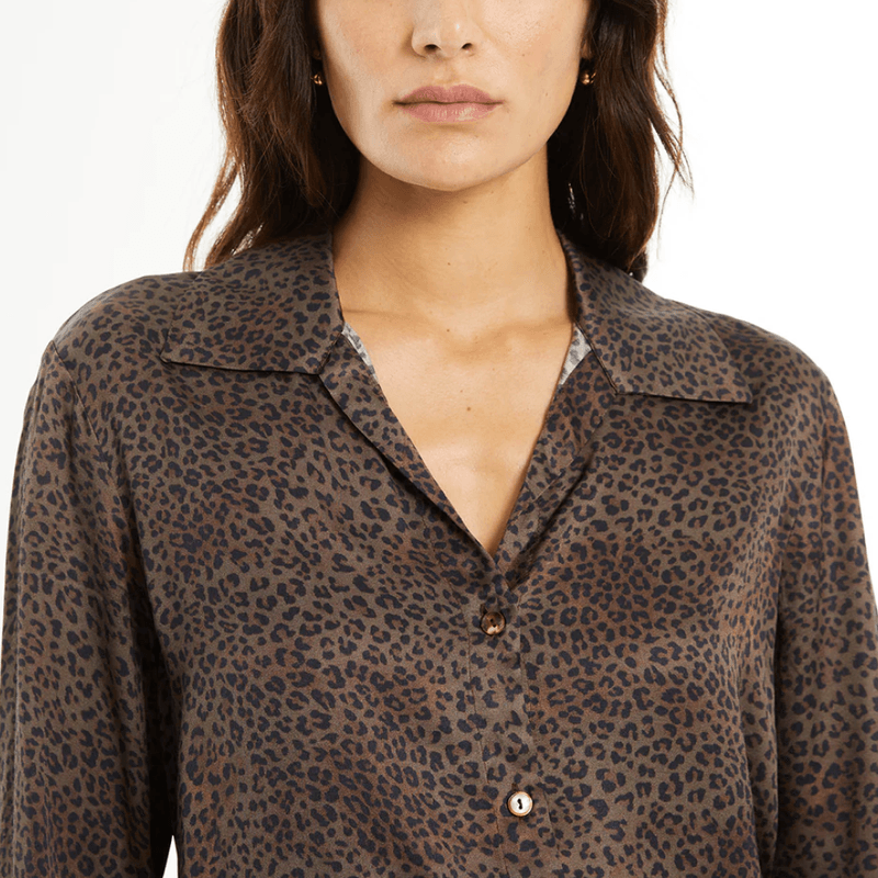 Camisa con estampado, diseñada con un tejido ligero que aporta fluidez y un movimiento sutil al caminar. Su tacto suave y el corte crean una estética sofisticada y atractiva sin esfuerzo.