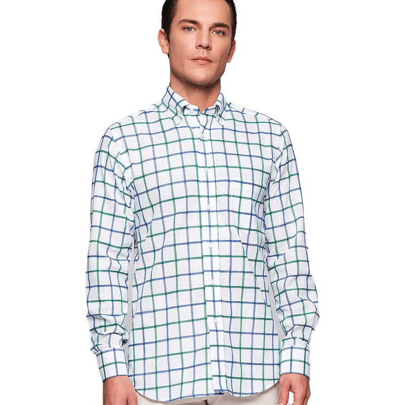 Camisa Hombre Manga Corta Cuadros Verde