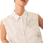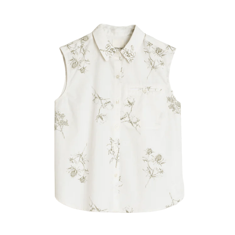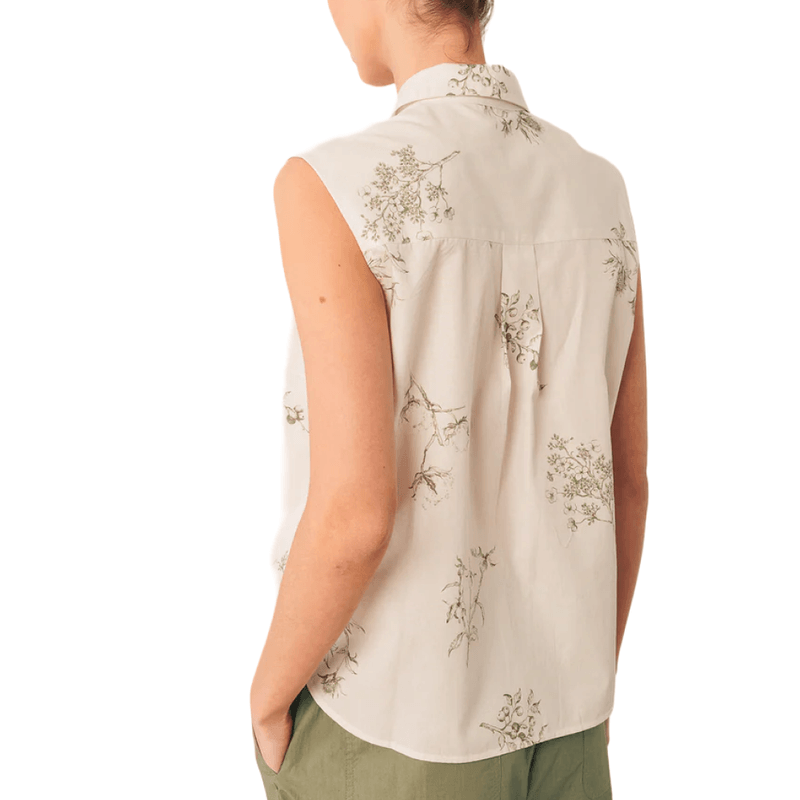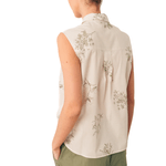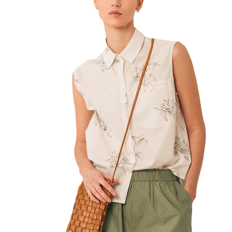 Camisa color khaki sin mangas confeccionada en algodón suave con corte relajado y acabado natural. Un básico cómodo y versátil, ideal para looks casuales o más arreglados según cómo la combines.