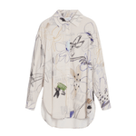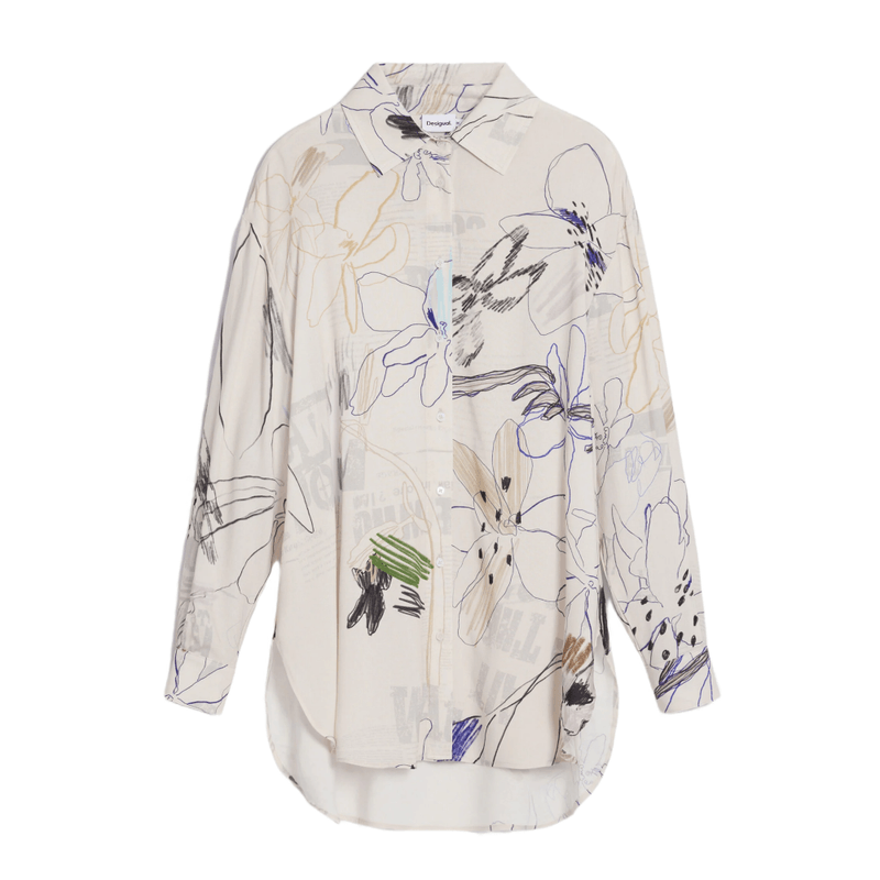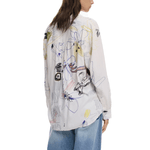 Camisa fluida oversize de manga larga con estampado Arty en estilo collage de letras y motivos florales.