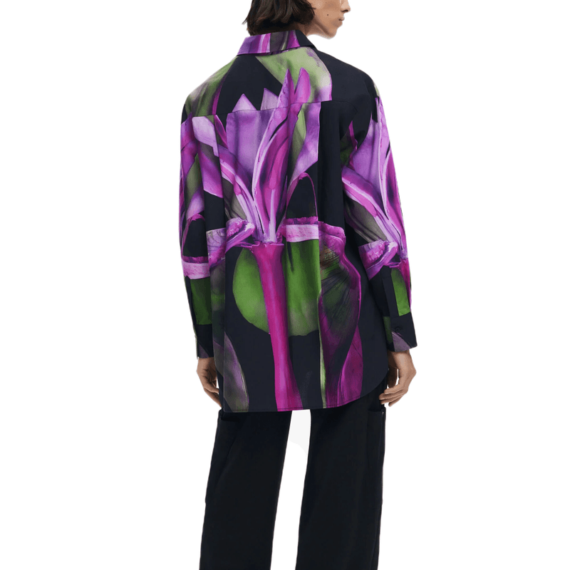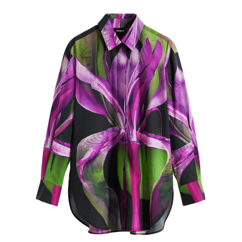 Camisa de popelina de manga larga y corte oversize, con estampado de orquídeas diseñado por Monsieur Christian Lacroix.