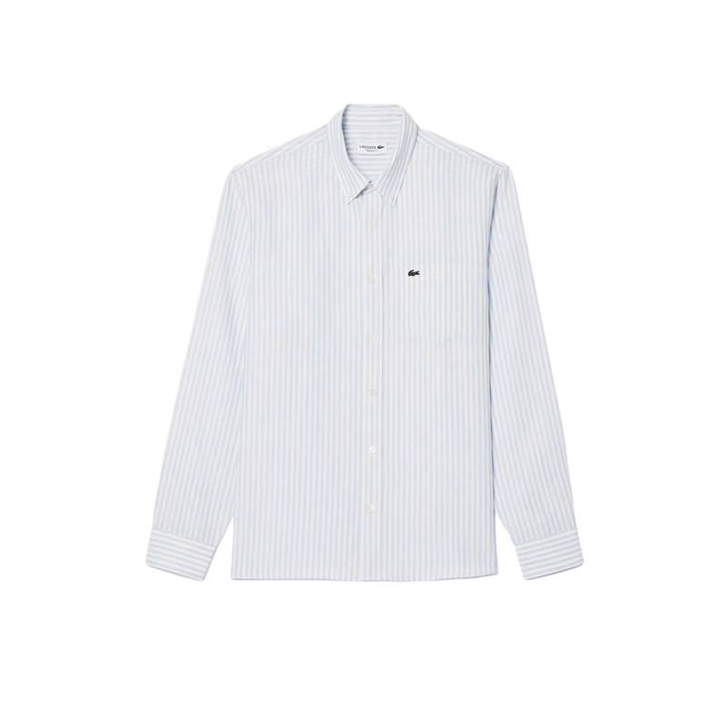 Camisa Rayada Lino Fit Manga Larga Blanca