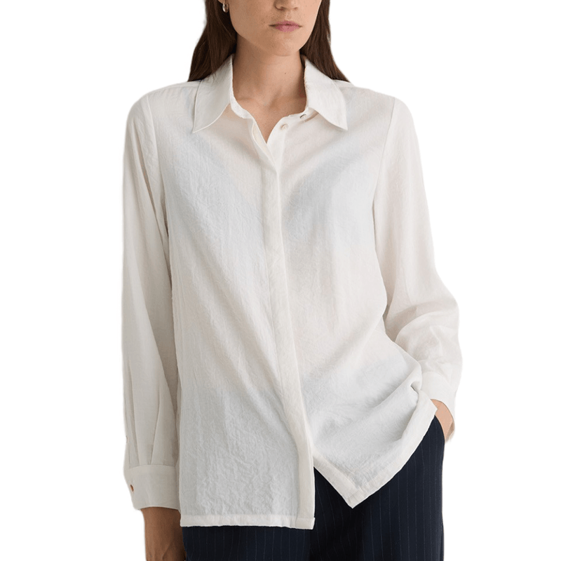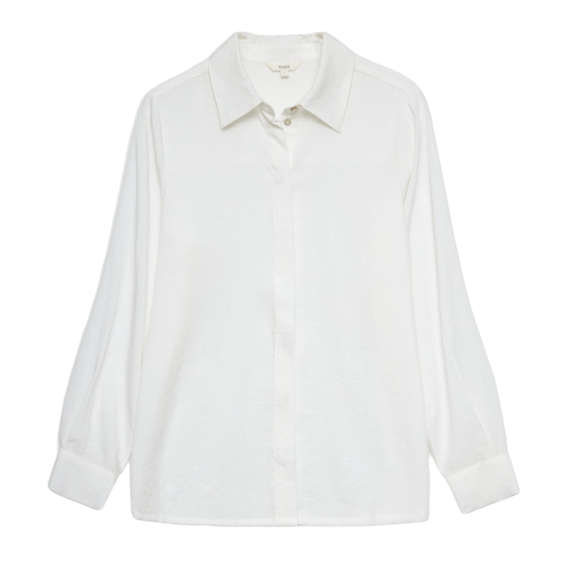 Camisa blanca de viscosa, ligera y suave al tacto. Un básico fresco y elegante que aporta comodidad y estilo al look diario.