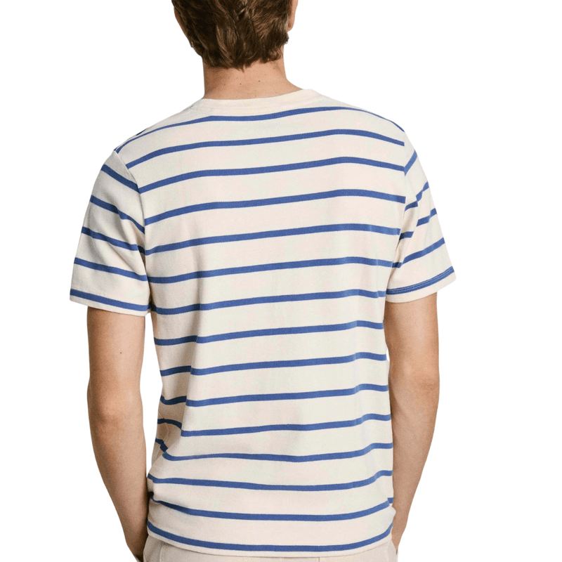 - Camiseta en tejido de jersey grueso - Ajuste regular - Mangas cortas - Cuello redondo - Estampado de rayas horizontales - Detalle de canalé en el cuello - Costuras dobles en mangas y dobladillo - Logotipo impreso en la banda interior del cuello - Etiqueta con el logotipo de PEPE JEANS en el dobladillo