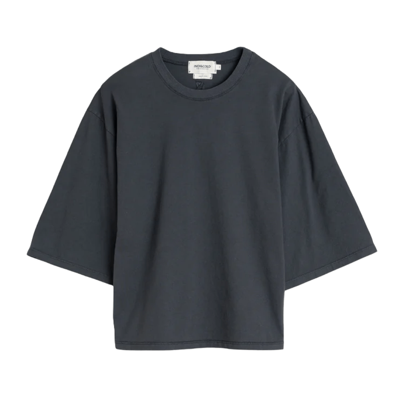 Camiseta color antracita de algodón suave con corte cómodo. Un básico moderno para looks diarios y relajados.