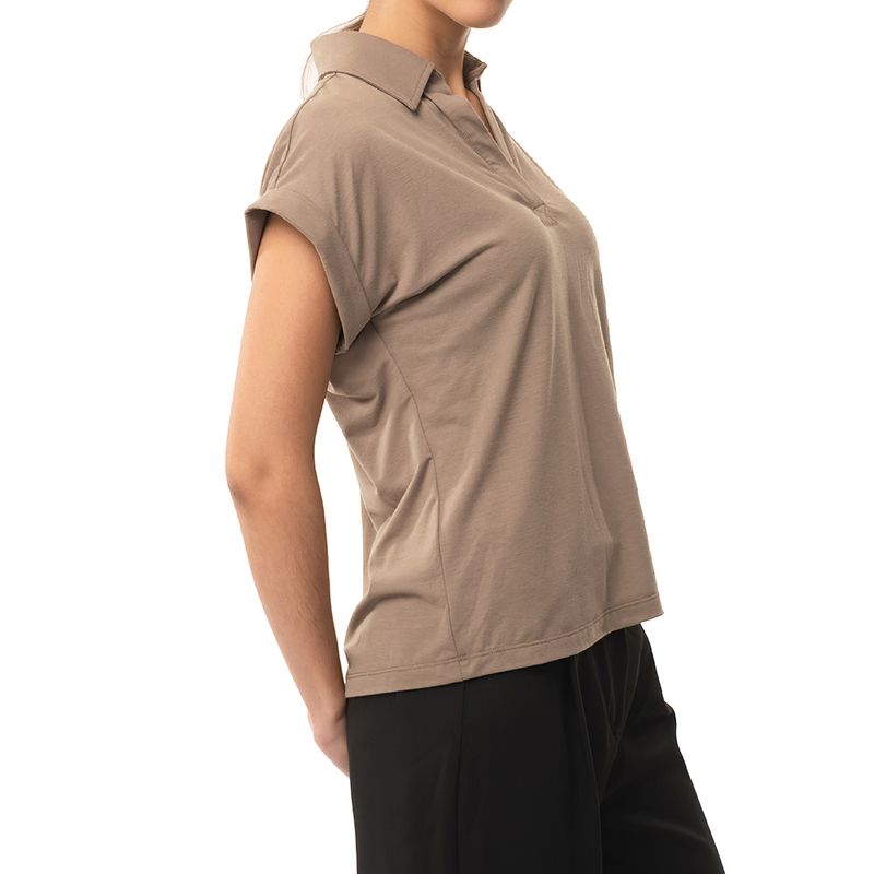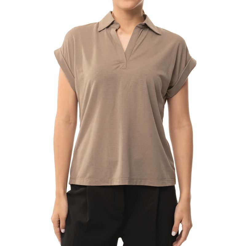 Camiseta tipo polo con cuello estructurado y estilo casual chic. Ideal para un look relajado pero cuidado.