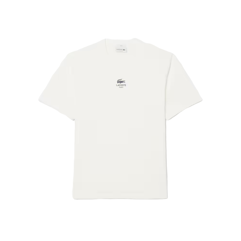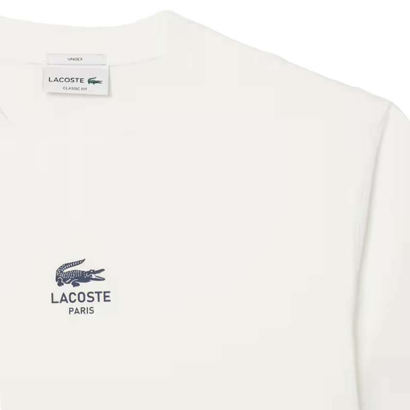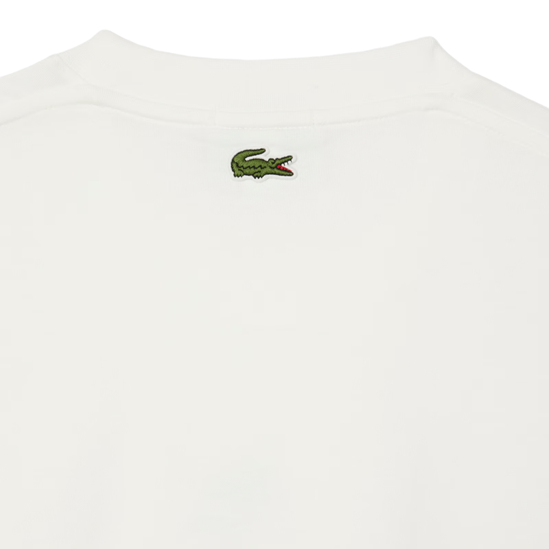 Prenda básica realizada en punto jersey grueso de Lacoste. Esta camiseta de cuello redondo clásico y corte fluido se adorna con cocodrilos bordados en el pecho y el cuello. Moda y deporte fusionados en un estilo emblemático