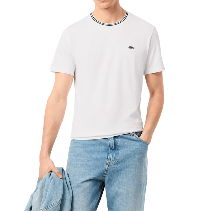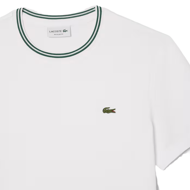 Esta camiseta está confeccionada con el icónico tejido petit piqué y presenta un corte regular para ofrecer comodidad natural. El cuello de punto con detalles en contraste aporta un toque moderno a este básico, con el clásico cocodrilo verde bordado en el pecho.