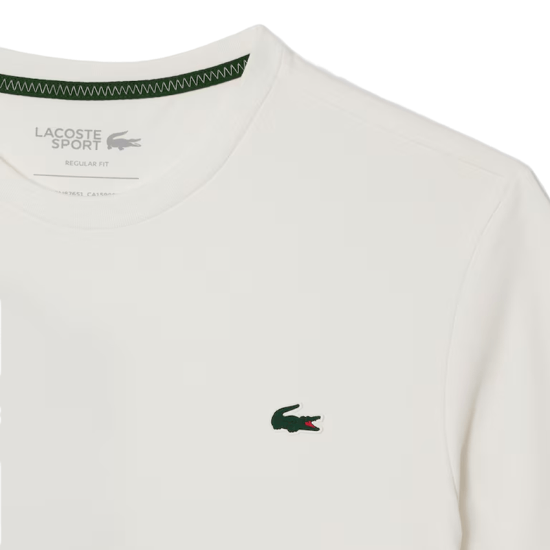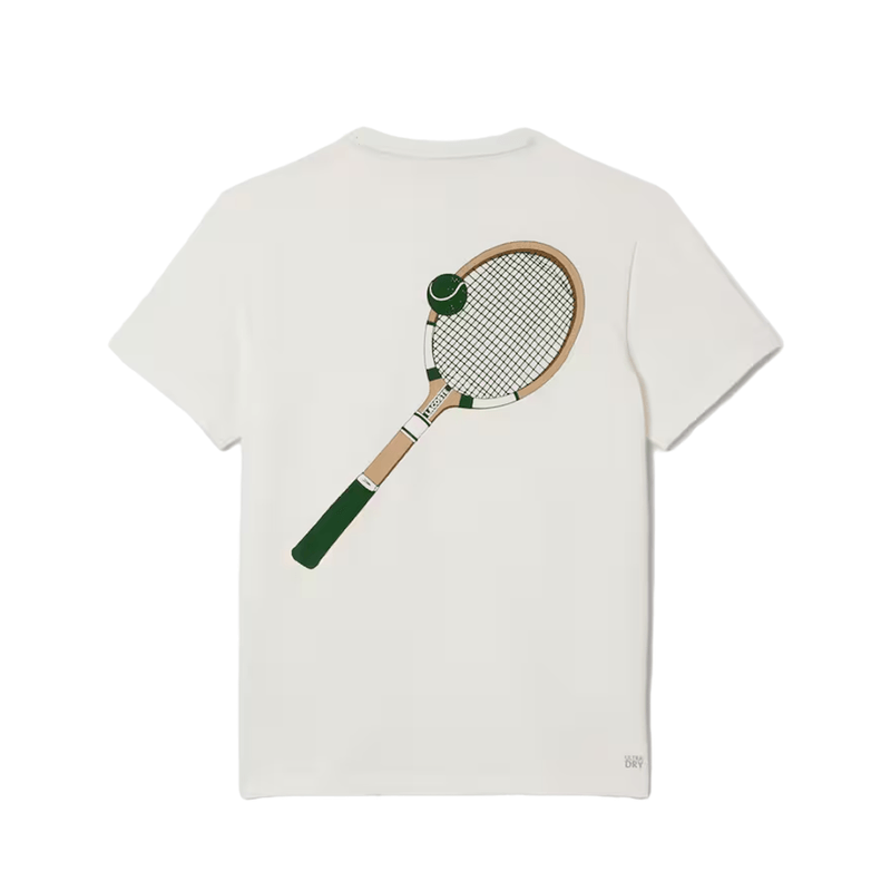 Una camiseta que fusiona rendimiento y estilo de Lacoste. Se ha confeccionado en punto jersey con tecnología Ultra-Dry para ofrecer mayor comodidad y una sensación de frescor duradera durante la actividad. Un diseño técnico que se completa con un estampado de archivo grande de una raqueta y una pelota para lucir elegante sobre la pista.