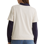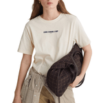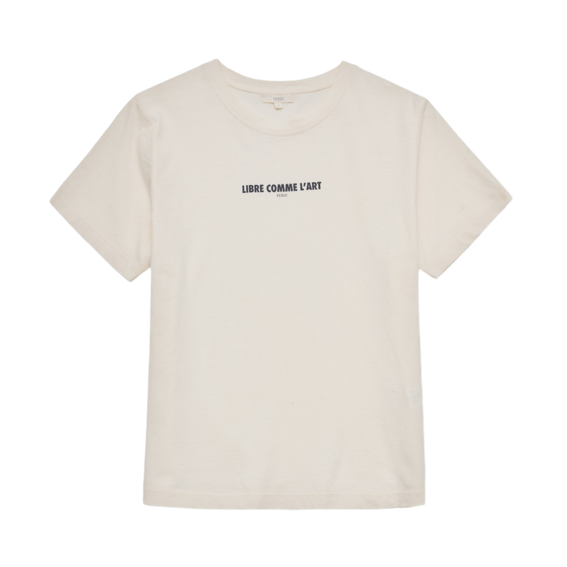 Camiseta en tono crudo con diseño posicional que añade un toque moderno y distintivo con mucho estilo.