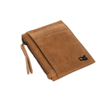 Cartera color camel en piel natural con diseño práctico y elegante. Perfecta para complementar cualquier bolso o look neutro.