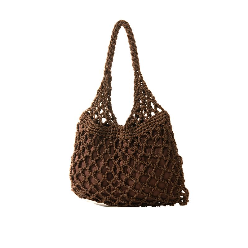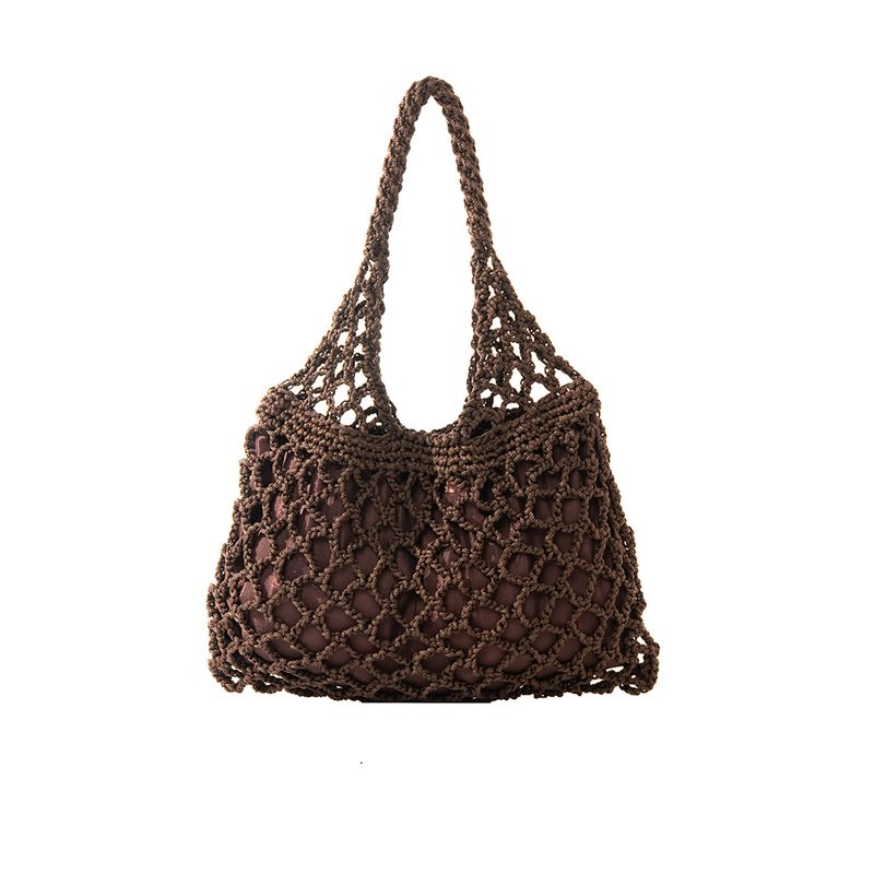 Cartera mediana en tono café, tejida a mano con diseño natural y elegante. Un complemento ideal para el día a día.