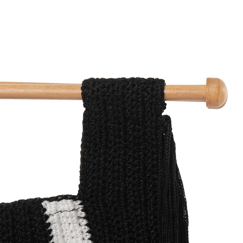 Cartera tejida artesanalmente en tonos negro y blanco. Un accesorio único que combina diseño, textura y estilo natural.