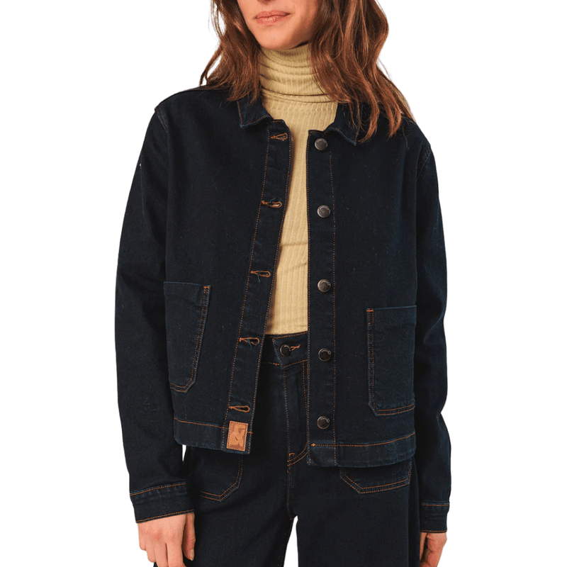 Cazadora azul marino de estilo casual con diseño cómodo y versátil. Perfecta para entretiempo y para completar looks diarios con estilo.