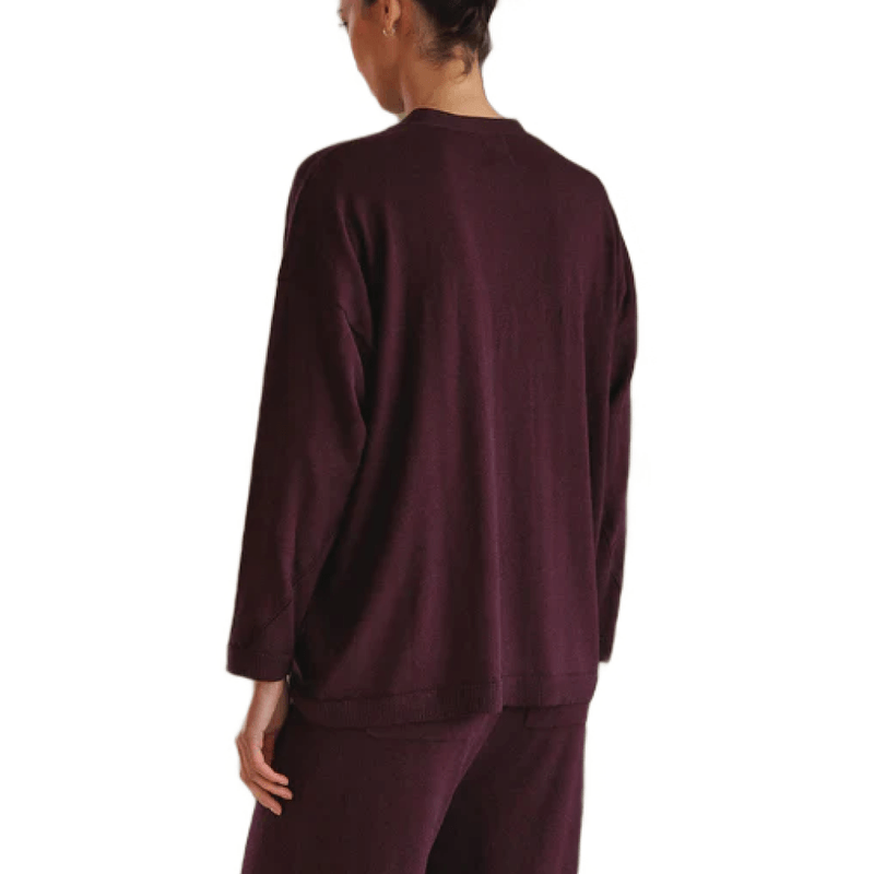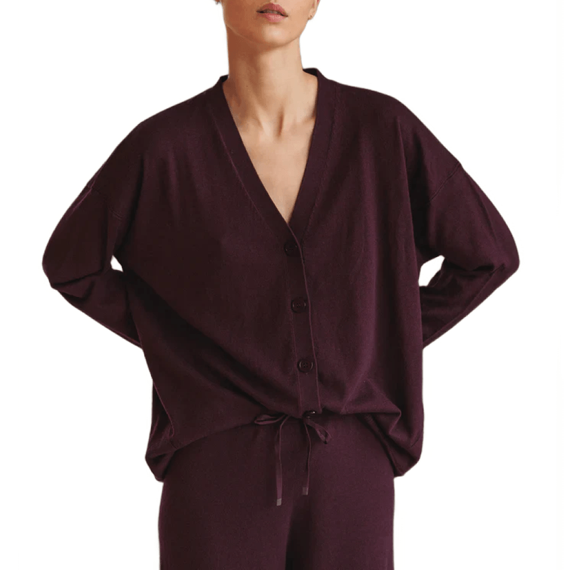 Chaqueta color berenjena de tejido suave y diseño elegante. Aporta color y sofisticación a cualquier conjunto.