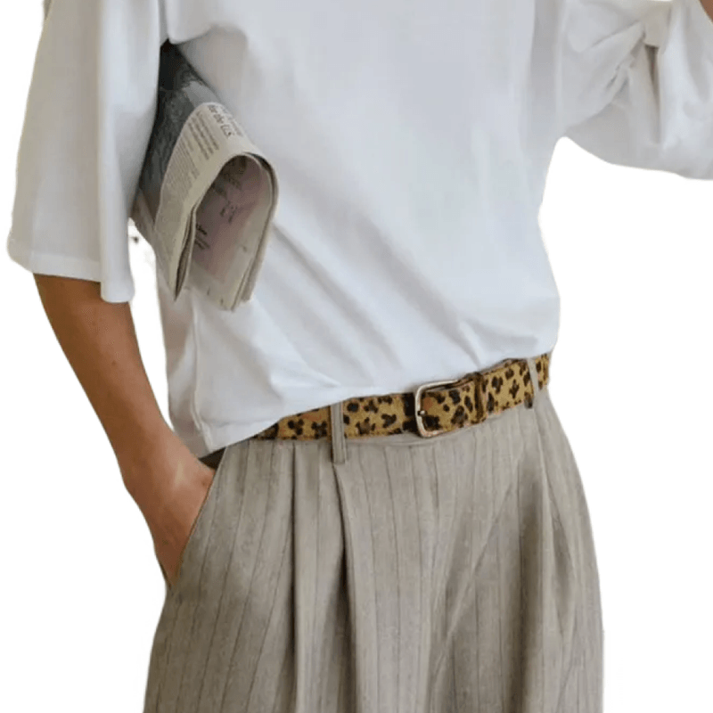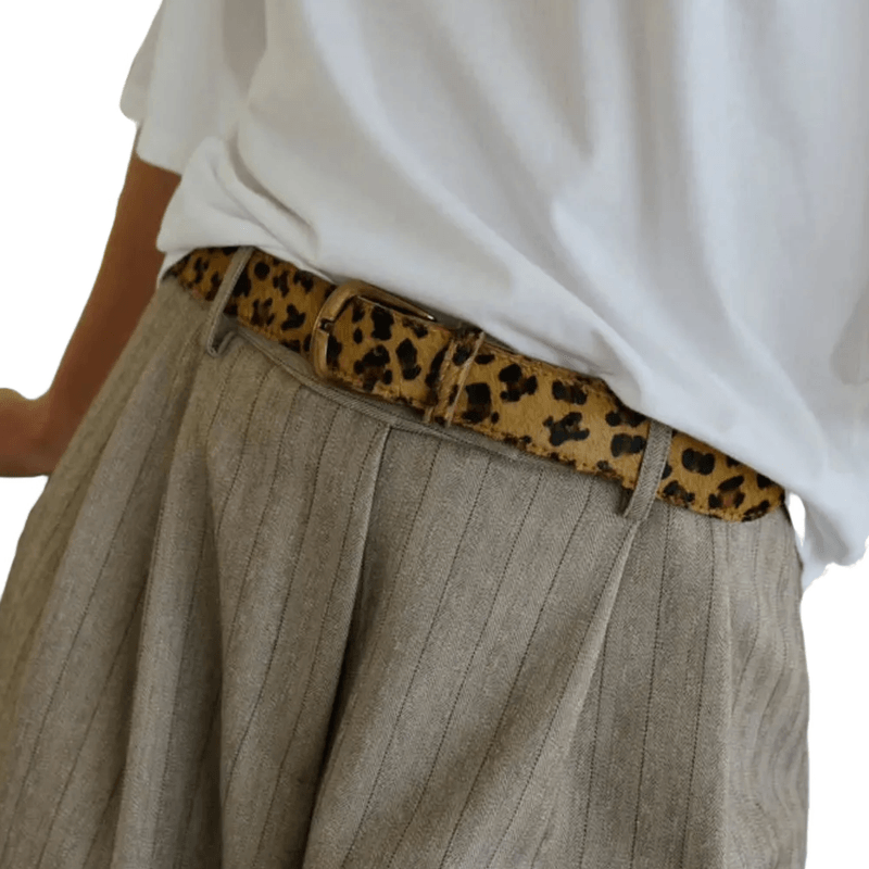 Cinturón color camel en piel con hebilla metálica limpia. Un básico elegante que realza cualquier outfit casual o formal.