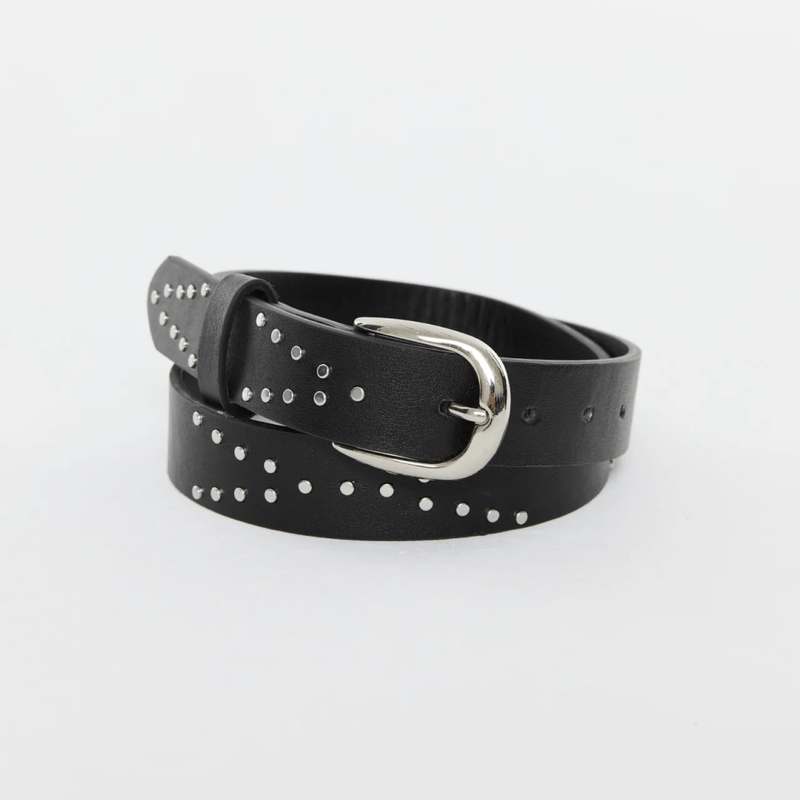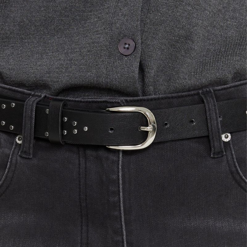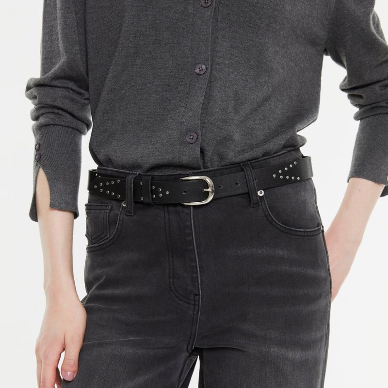 Cinturón de cuero ecológico con hebilla redonda y tachas