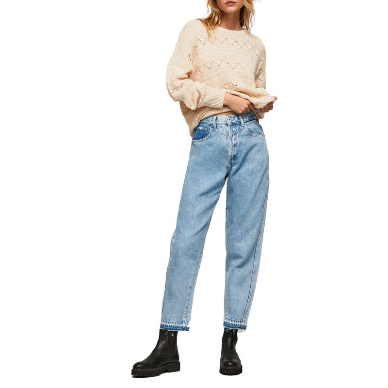 Denim de cinco bolsillos con cierre de cremallera y etiqueta con botón y logo Pepe Jeans en la parte trasera. Cintura alta, ajuste de globo, 99% Algodón, 1% Elastano.