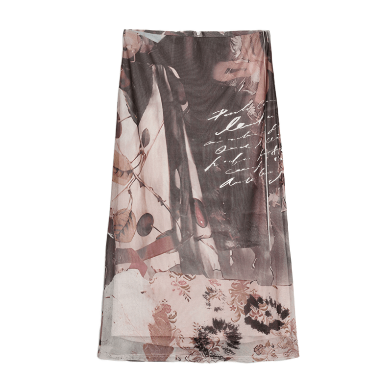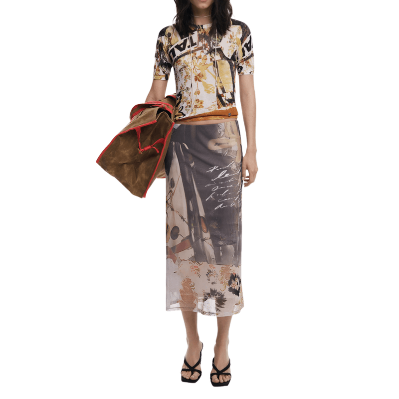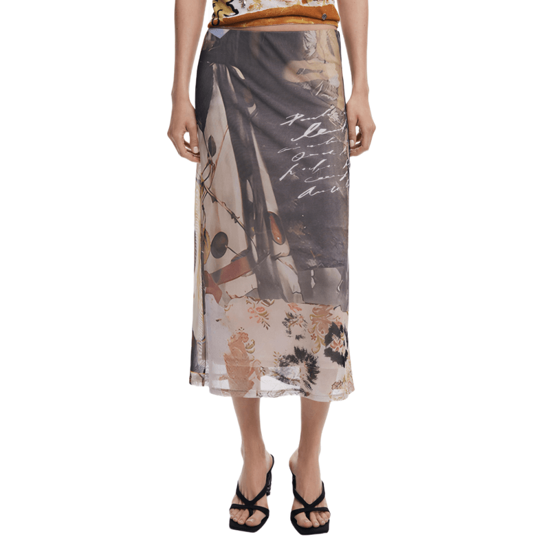 Falda midi hasta la rodilla en tul con cinturilla elástica y estampado efecto Collage.