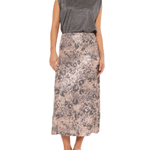 Falda de textura luminosa con una estructura ligera que se adapta a la silueta con naturalidad.
