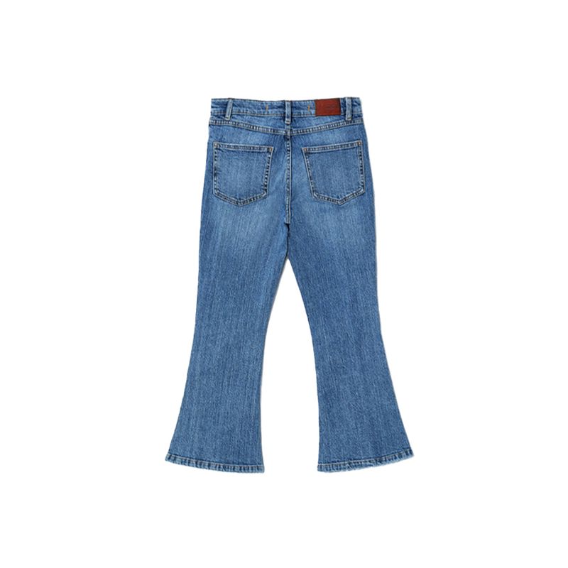 Tejido denim elástico y flexible. Fit flare. Tiro medio. Lavado dark used. Bajo deshilachado.Estilo 5 bolsillos