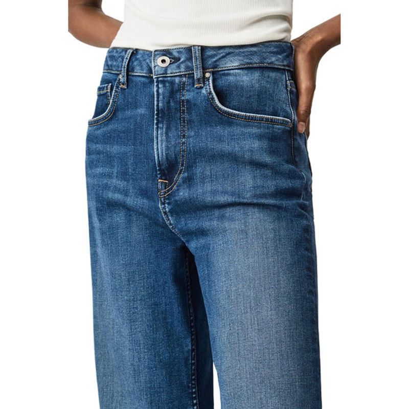 Pantalón vaquero de cintura alta de lavado ecológico Wiser Wash. Cinco bolsillos, cierre de cremallera y etiqueta con el logo de Pepe Jeans. Talle grande. Cintura alta. Pierna recortada. 82 % algodón, 16 % poliéster, 2 % elastano