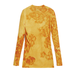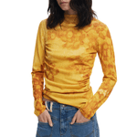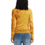 Jersey fino de manga larga y cuello redondo, ligeramente largo, de color liso con estampado de flores acuareladas en el mismo tono.