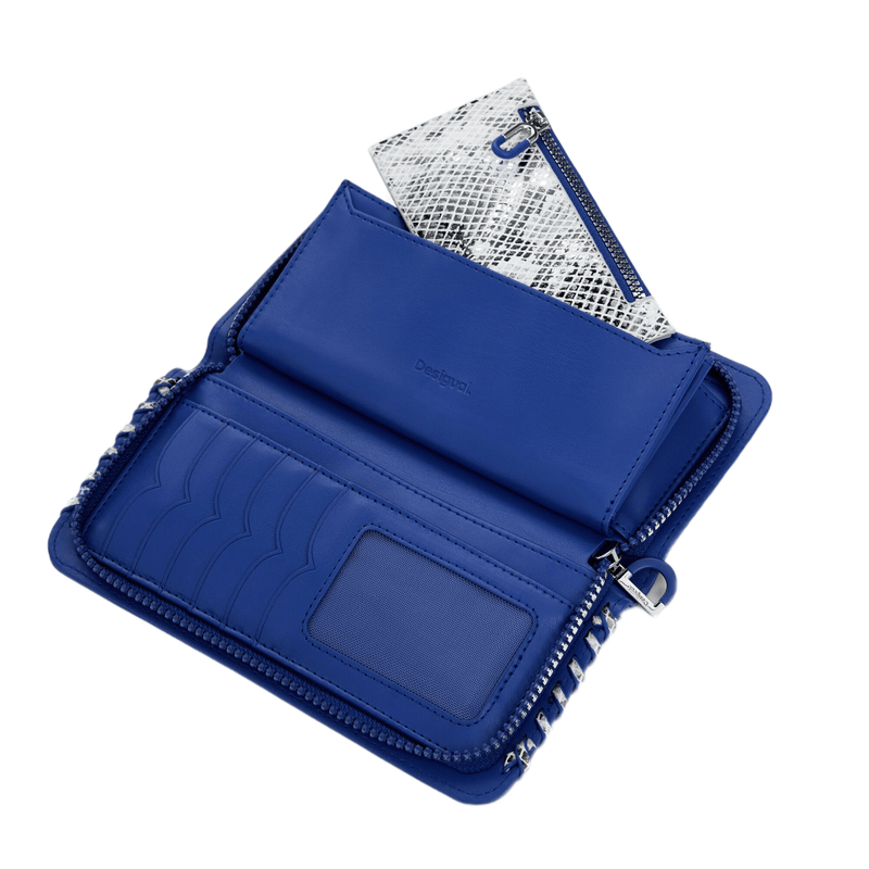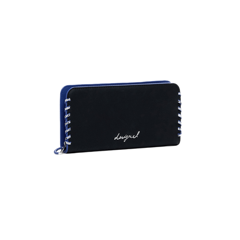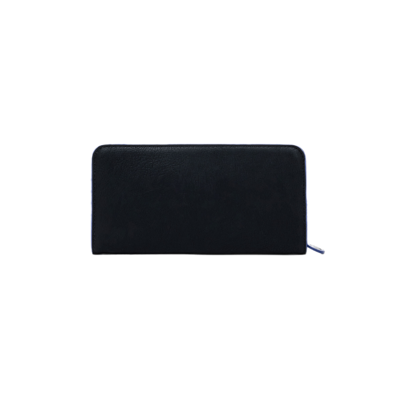 Billetera grande de cuero sintético con costuras laterales, cierre con cremallera, múltiples ranuras para tarjetas y logo metálico grabado. Elegante, práctica y pensada para el uso diario.