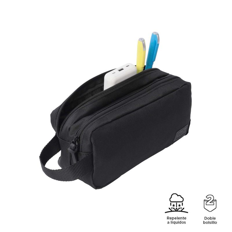 La cartuchera mediana Chizal es la elección perfecta para mantener tus cosméticos organizados y protegidos durante tus viajes. Confeccionada en poliéster 100%, esta cosmetiquera ofrece durabilidad y resistencia. Sus características incluyen un diseño de doble bolsillo que proporciona un amplio espacio de almacenamiento. Además, cuenta con una manija fija que asegura un transporte cómodo y fácil.