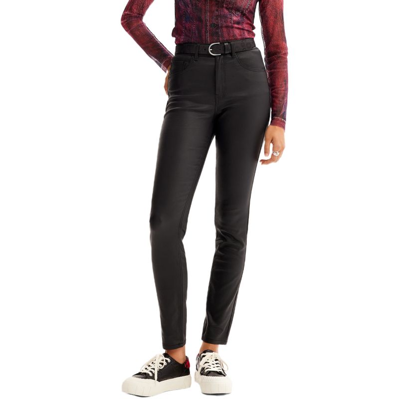 Pantalón ajustado de tiro medio, corte push-up en el trasero y tejido elástico efecto piel.