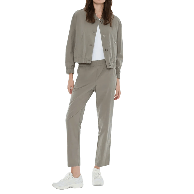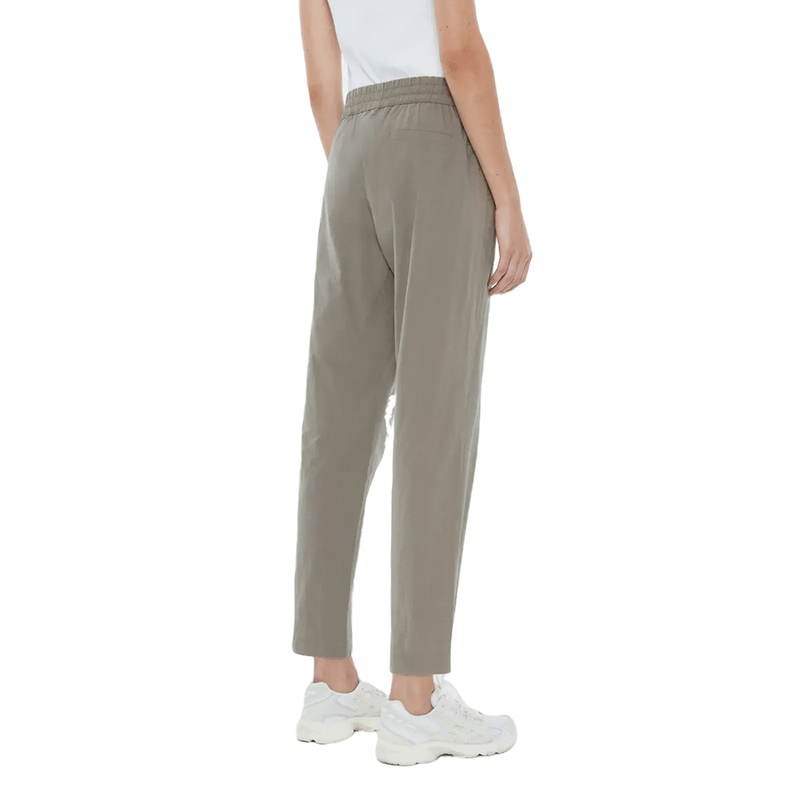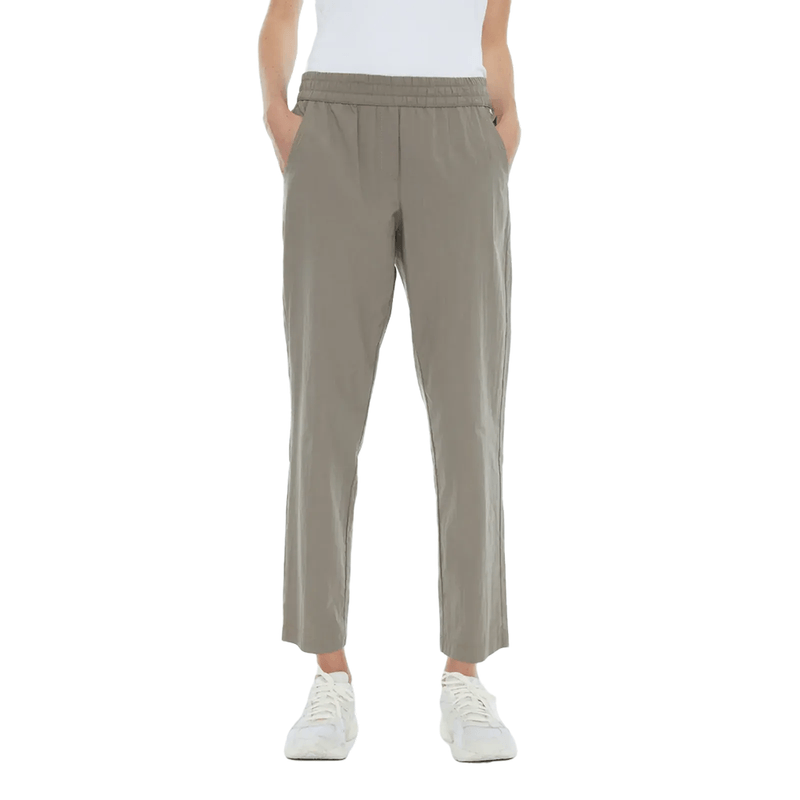 Pantalón tobillero de mujer tipo jogger de tiro alto, cintura con goma elástica y bolsillos latelares.