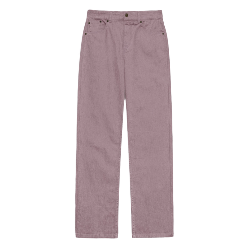 Pantalones denim rectos en tono mauve, una propuesta original que aporta personalidad sin perder elegancia.