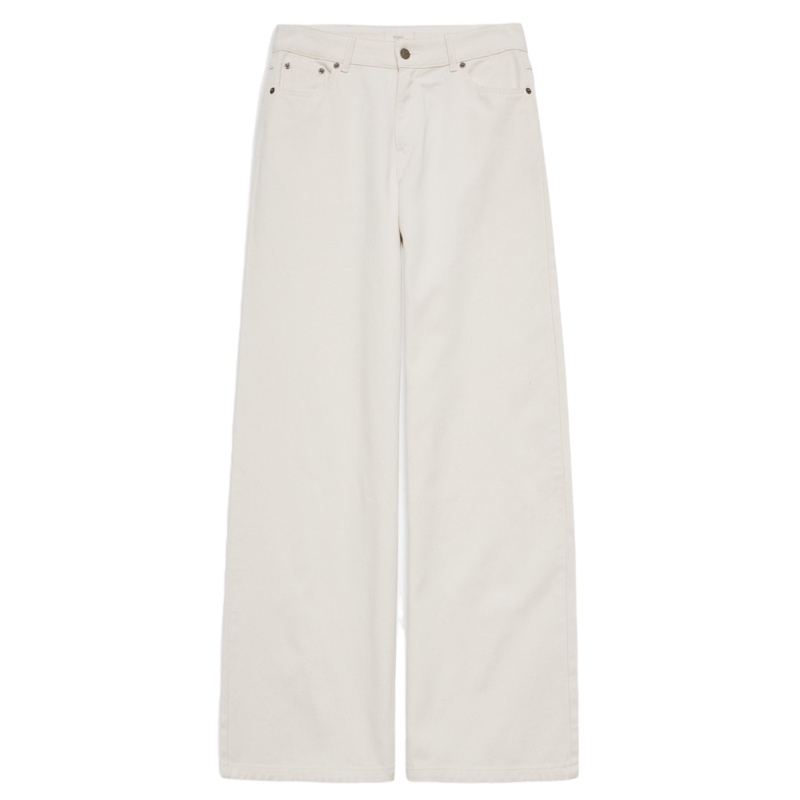 Pantalones denim wide leg en color ecru, con diseño actual y caída estructurada. Una prenda versátil que aporta estilo y comodidad a looks modernos y cuidados.